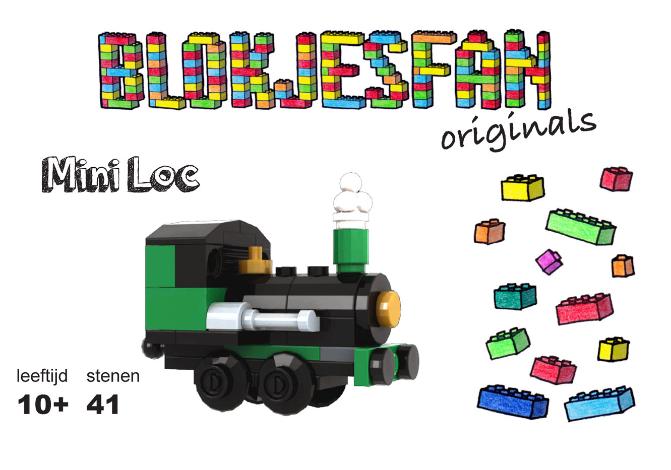 Een schattig groen locomotiefje. Een klein setje van 41 LEGO-stenen met papieren instructie.